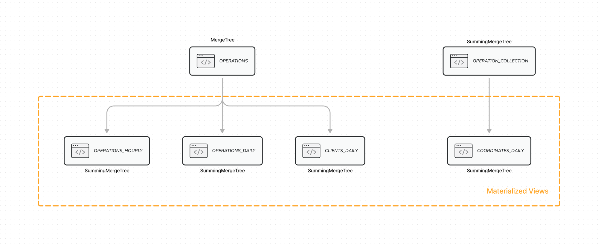 that are Materialized Views of the original operations table.